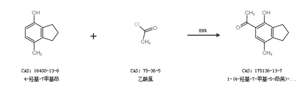 1.通过4-羟基-7甲基茚和乙酰氯合成1-(4-羟基-7-甲基-5-茚满)-乙酮,收率约89%;