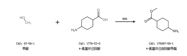 1.通过甲醇和4-氨基环己羧酸合成4-氨基环己烷羧酸甲酯,收率约99%;