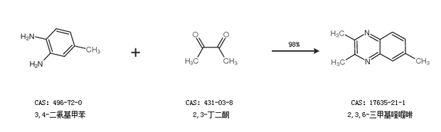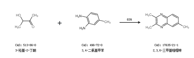 2.通过3-羟基-2-丁酮和3,4-二氨基甲苯合成2,3,6-三甲基喹喔啉,收率约83%;