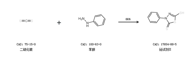 1.通过二硫化碳和苯肼合成铋试剂Ⅱ,收率约86%;