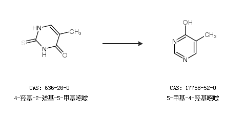 2.通过4-羟基-2-巯基-5-甲基嘧啶合成5-甲基-4-羟基嘧啶
