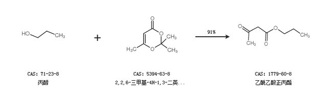 1.通过丙醇和2,2,6-三甲基-4H-1,3-二英-4-酮合成乙酰乙酸正丙酯,收率约91%;
