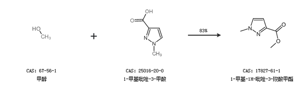 1.通过甲醇和1-甲基吡唑-3-甲酸合成1-甲基-1H-吡唑-3-羧酸甲酯,收率约83%;