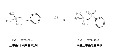 1.通过三甲基(苯硫甲基)硅烷合成苯基三甲基硅基甲砜,收率约10%;