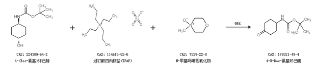 2.通过4-(Boc-氨基)环己醇、过钌酸四丙胺盐(TPAP)和N-甲基吗啉氮氧化物合成4-N-Boc-氨基环己酮,收率约95%;