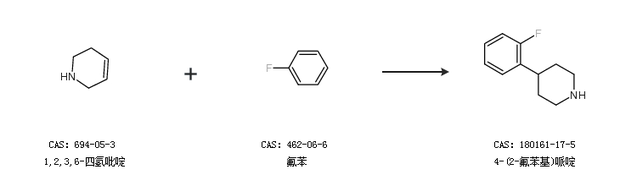 1.通过1,2,3,6-四氢吡啶和氟苯合成4-(2-氟苯基)哌啶