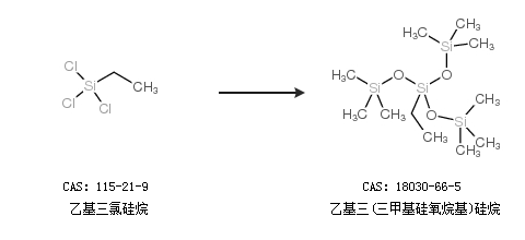 1.通过乙基三氯硅烷合成乙基三(三甲基硅氧烷基)硅烷