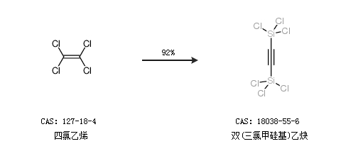 1.通过四氯乙烯合成双(三氯甲硅基)乙炔,收率约92%;