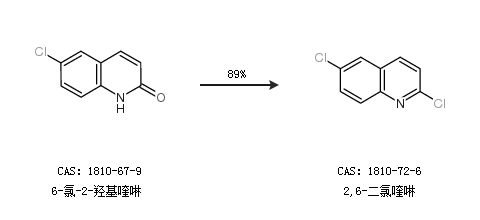 1.通过6-氯-2-羟基喹啉合成2,6-二氯喹啉,收率约89%;