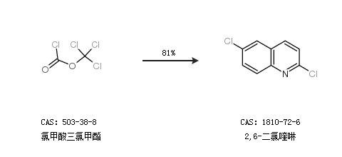 2.通过氯甲酸三氯甲酯合成2,6-二氯喹啉,收率约81%;