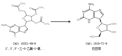 2.通过2'',3'',5''-三-O-乙酰-2-氨基-6-氯嘌呤核苷合成巴豆苷