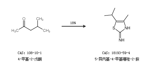 2.通过4-甲基-2-戊酮合成5-异丙基-4-甲基噻唑-2-胺,收率约18%;