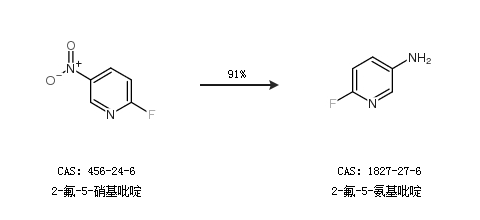 1.通过2-氟-5-硝基吡啶合成2-氟-5-氨基吡啶,收率约91%;