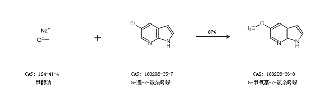 1.通过甲醇钠和5-溴-7-氮杂吲哚合成5-甲氧基-7-氮杂吲哚,收率约87%;