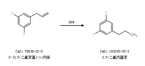 1.通过3-(3,5-二氟苯基)-1-丙烯合成3,5-二氟丙基苯,收率约88%;