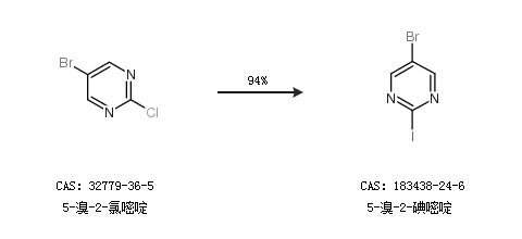 1.通过5-溴-2-氯嘧啶合成5-溴-2-碘嘧啶,收率约94%;