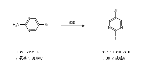 2.通过2-氨基-5-溴嘧啶合成5-溴-2-碘嘧啶,收率约83%;