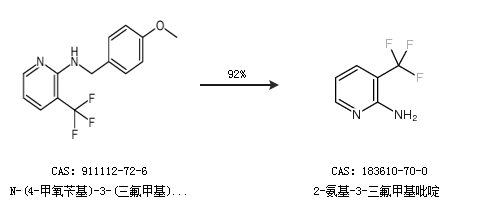 1.通过N-(4-甲氧苄基)-3-(三氟甲基)吡啶-2-胺合成2-氨基-3-三氟甲基吡啶,收率约92%;