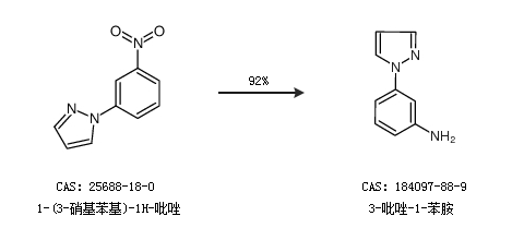 1.通过1-(3-硝基苯基)-1H-吡唑合成3-吡唑-1-苯胺,收率约92%;