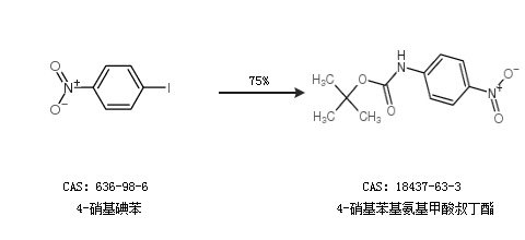 2.通过4-硝基碘苯合成4-硝基苯基氨基甲酸叔丁酯,收率约75%;
