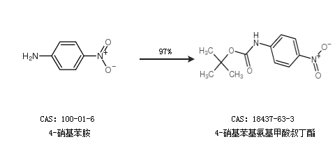 1.通过4-硝基苯胺合成4-硝基苯基氨基甲酸叔丁酯,收率约97%;