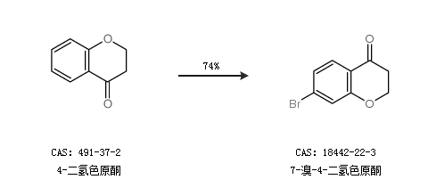 2.通过4-二氢色原酮合成7-溴-4-二氢色原酮,收率约74%;