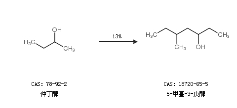 1.通过仲丁醇合成5-甲基-3-庚醇,收率约13%;