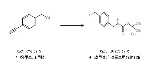 2.通过4-(羟甲基)苯甲腈合成4-(溴甲基)苄基氨基甲酸叔丁酯