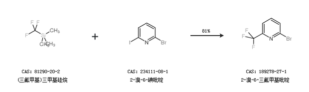1.通过(三氟甲基)三甲基硅烷和2-溴-6-碘吡啶合成2-溴-6-三氟甲基吡啶,收率约81%;