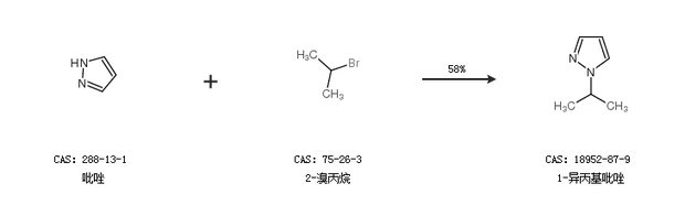 1.通过吡唑和2-溴丙烷合成1-异丙基吡唑,收率约58%;