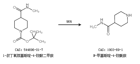 1.通过1-叔丁氧羰基哌啶-4-羧酸二甲胺合成N-甲基哌啶-4-羧酰胺,收率约96%;