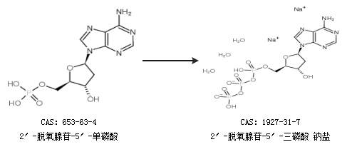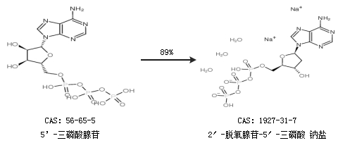 1.通过5’-三磷酸腺苷合成2′-脱氧腺苷-5′-三磷酸 钠盐,收率约89%;