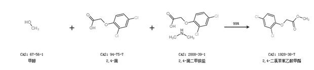 1.通过甲醇、2,4-滴和2,4-滴二甲胺盐合成2,4-二氯苯氧乙酸甲酯,收率约99%;