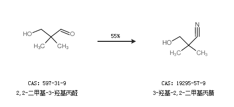2.通过2,2-二甲基-3-羟基丙醛合成3-羟基-2,2-二甲基丙腈,收率约55%;