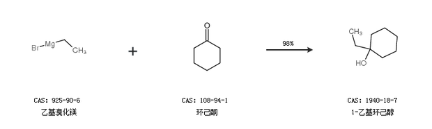 1.通过乙基溴化镁和环己酮合成1-乙基环己醇,收率约98%;