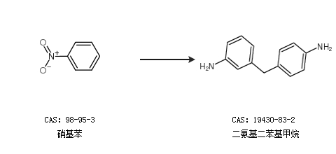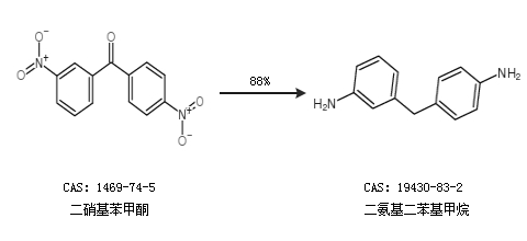 1.通过二硝基苯甲酮合成二氨基二苯基甲烷,收率约88%;