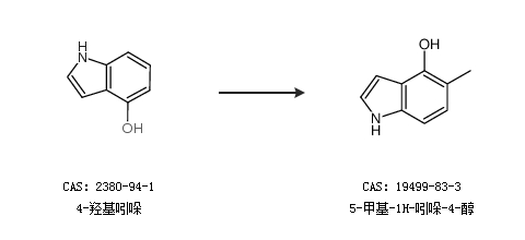 1.通过4-羟基吲哚和甲醛合成5-甲基-1H-吲哚-4-醇