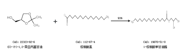 1.通过(S)-(+)-1,2-异亚丙基甘油和棕榈酰氯合成1-棕榈酸单甘油酯,收率约93%;