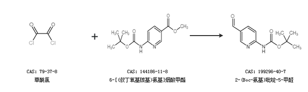2.通过草酰氯和6-[(叔丁氧基羰基)氨基]烟酸甲酯合成2-(Boc-氨基)吡啶-5-甲醛