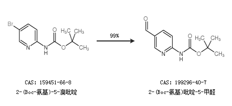 1.通过2-(Boc-氨基)-5-溴吡啶合成2-(Boc-氨基)吡啶-5-甲醛,收率约99%;