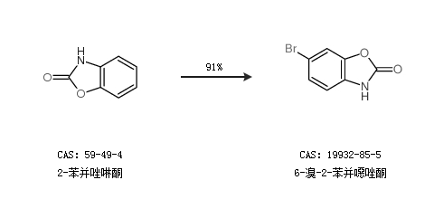 1.通过2-苯并唑啉酮合成6-溴-2-苯并噁唑酮,收率约91%;