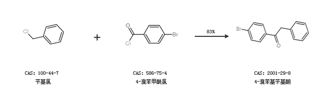 1.通过溴代苯和氯化苯乙酰合成4-溴苯基苄基酮,收率约55%;
