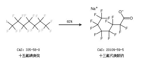 2.通过十五氟碘庚烷合成十三氟代庚酸钠,收率约82%;