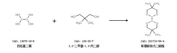 1.通过2,2-二甲基-1,3-丙二醇合成联硼酸新戊二醇酯,收率约55%;