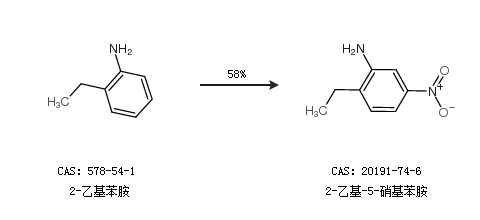 1.通过2-乙基苯胺合成2-乙基-5-硝基苯胺,收率约58%;