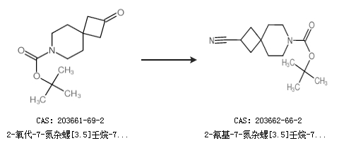 1.通过2-氧代-7-氮杂螺[3.5]壬烷-7-甲酸叔丁酯合成2-氰基-7-氮杂螺[3.5]壬烷-7-羧酸叔丁酯,收率约32%;
