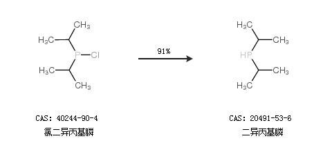 1.通过氯二异丙基膦合成二异丙基膦,收率约91%;