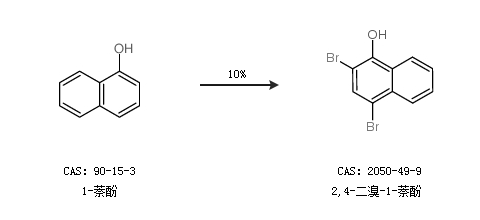 2.通过1-萘酚合成2,4-二溴-1-萘酚,收率约10%;