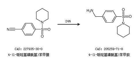1.通过4-(1-哌啶基磺酰基)苯甲腈合成4-(1-哌啶基磺酰基)苯甲胺,收率约24%;