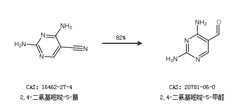 1.通过2,4-二氨基嘧啶-5-腈合成2,4-二氨基嘧啶-5-甲醛,收率约82%;